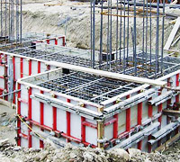 Durch die kompakte Bauweise sind alle Elemente von Hand versetzbar. Speziell als Fundamentschalung überzeugt die günstige Spannstellenlage, auch bei eingebautem Fugenband oder vorbetoniertem "Anfänger".
